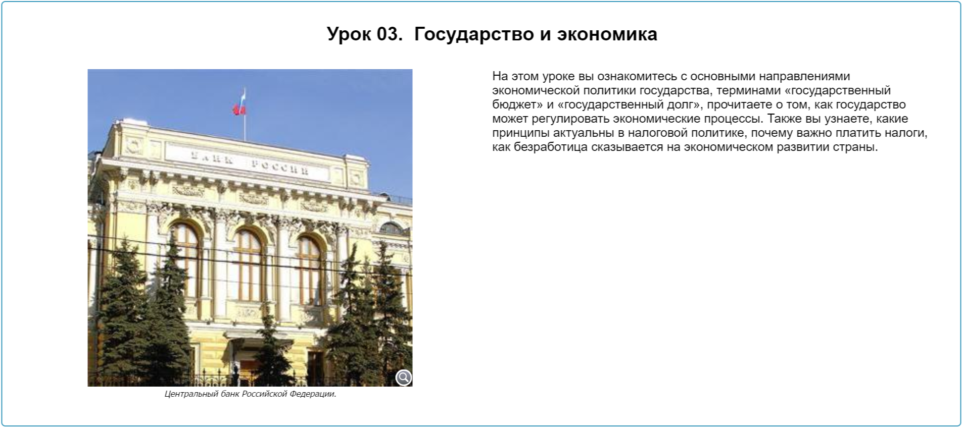 Учебные курсы построены по принципу последовательно отображаемых логически выстроенных слайдов, содержащих текстовые материалы и различные мультимедийные объекты – иллюстрации, анимации, видео- и аудиофрагменты, медиалекции, интерактивные объекты, схемы, графики, карты, примеры решения задач и многие другие.